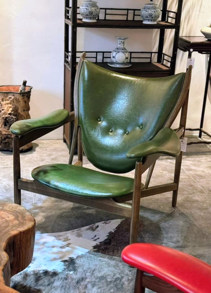 or oak and upholstered with exclusive, rich leathers, this chair will